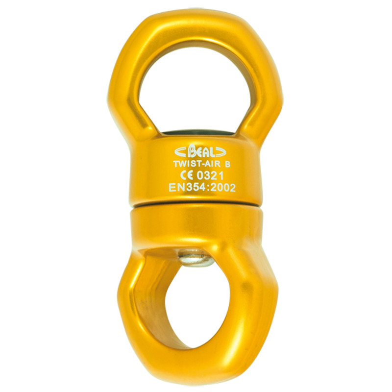 Kompaktný, ľahký, otočný hliníkový otočný čap s guličkovými ložiskami. Otočná spojka BEAL Twist’Air B je navrhnutá pre maximálnu optimalizáciu výkonu aj pri vyššom zaťažení. Spojka sa používa pre spojenie lana a záťaže a zamedzuje krúteniu lana pri otáčaní.